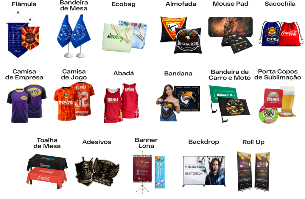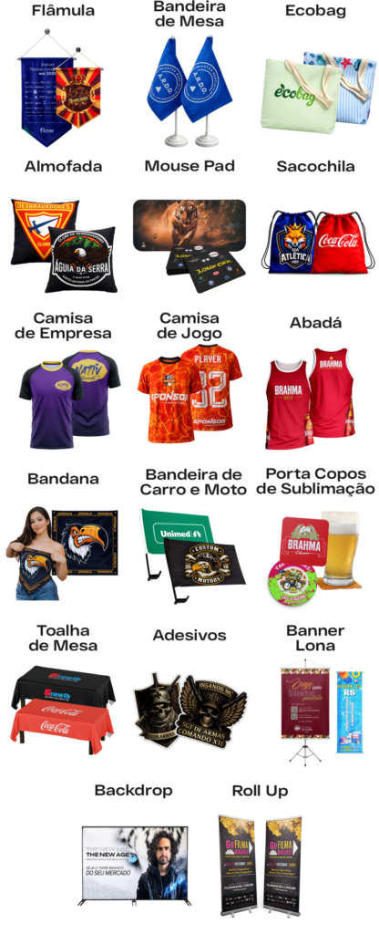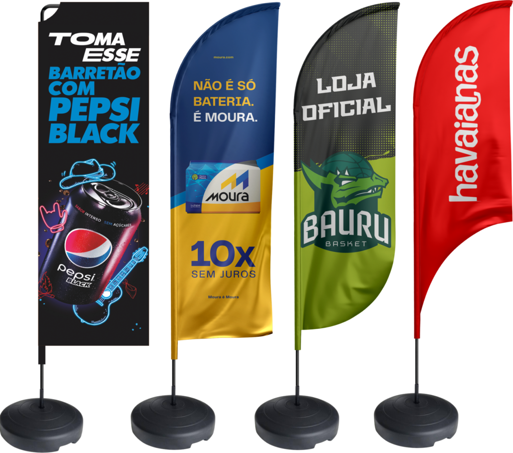 Produzimos bandeiras personalizadas, bandeirões, wind banners, faixas e muito mais — tudo com impressão em alta definição, cores vivas que não desbotam e acabamento profissional.
